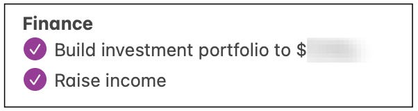 So that’s what informed the other goal: raise my income.