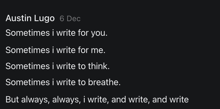 So here’s to more writing just like Austin Lugo says here: